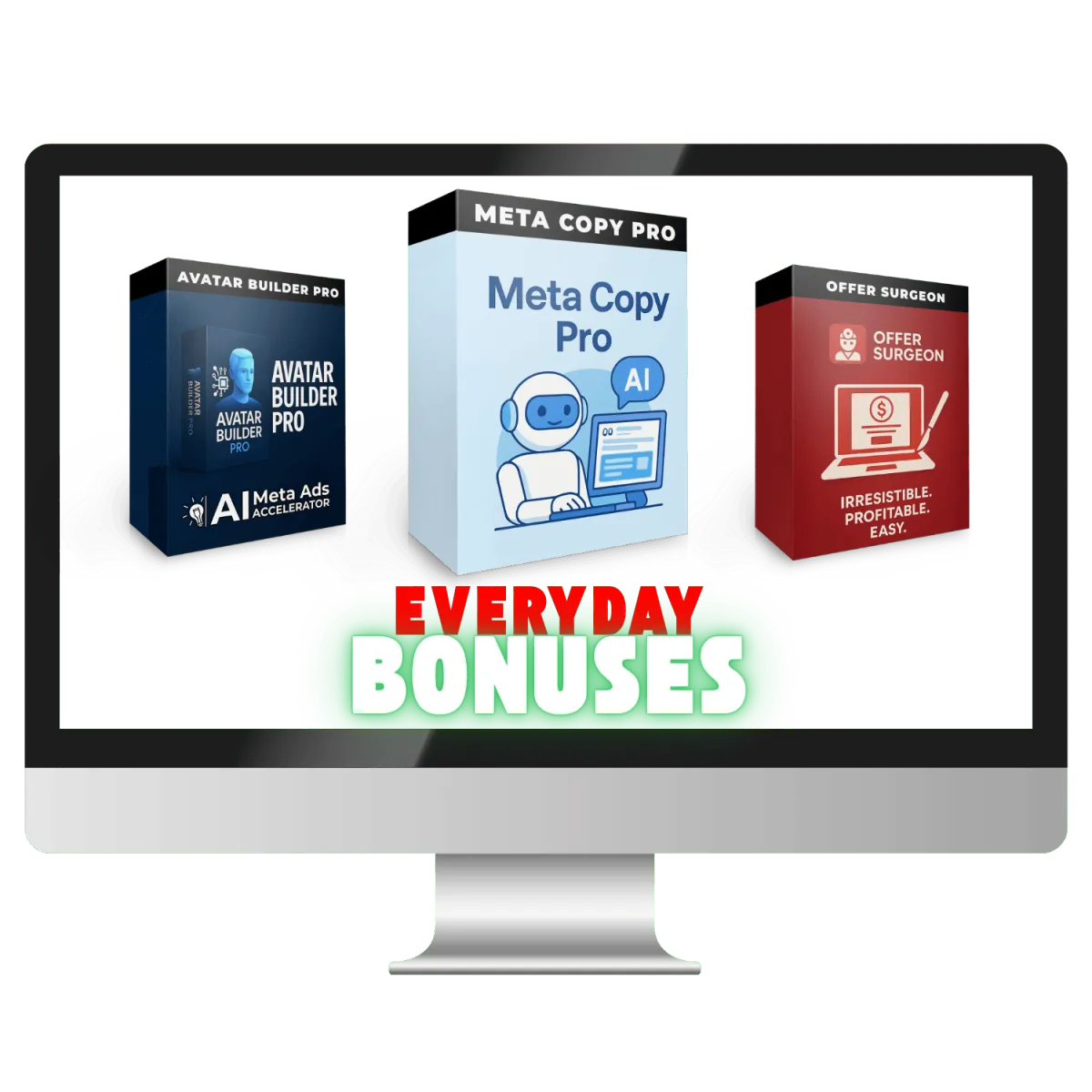 ✅ Lifetime access to all AI Tools (Avatar Builder Pro™, Offer Surge™, HookStorm™, CopyForge™)